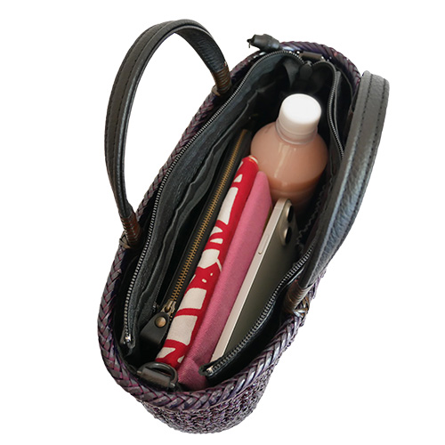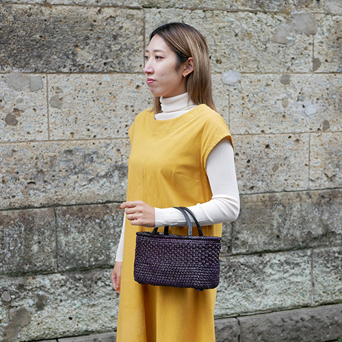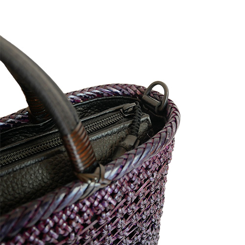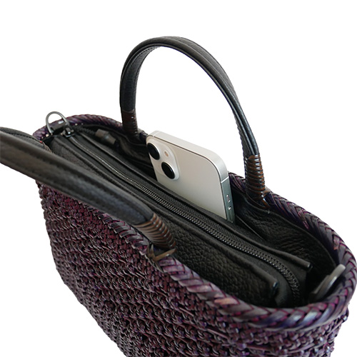 Dカンが付いておりお手持ちのショルダー紐や根竹ストラップ(別売り)をつけるとショルダーバッグとしても使える2WAY仕様です
