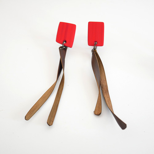 プレートには大分県産の真竹、ねじねじのパーツはほうび竹を使った贅沢なイヤリング