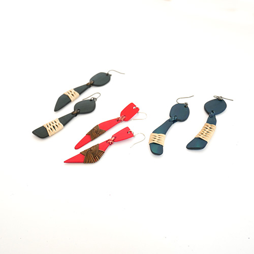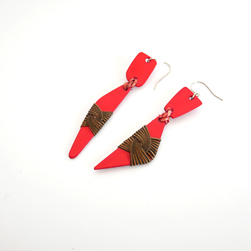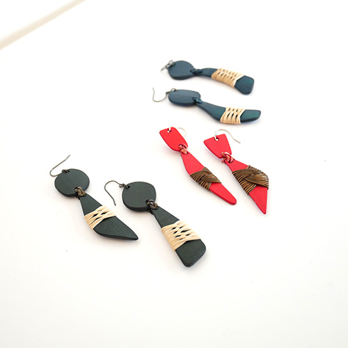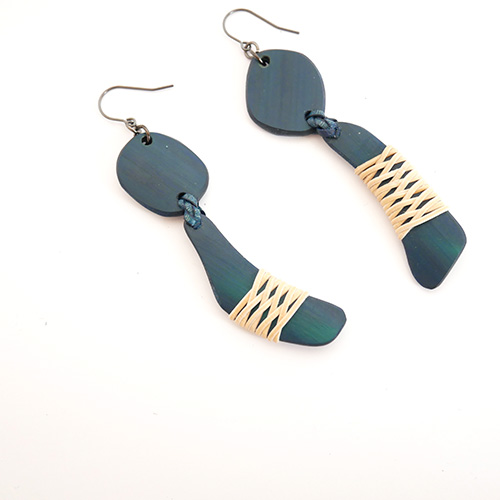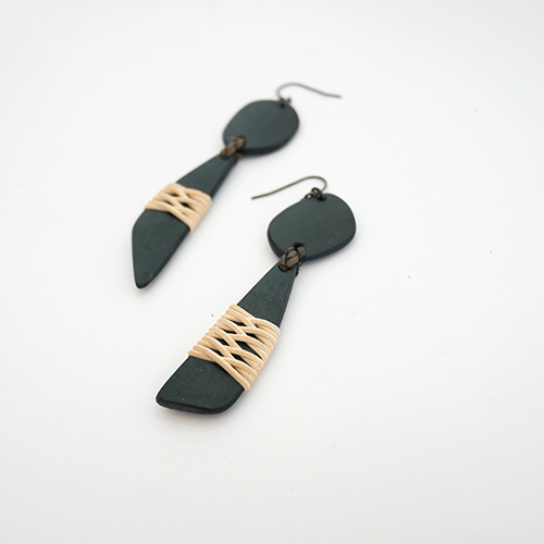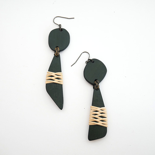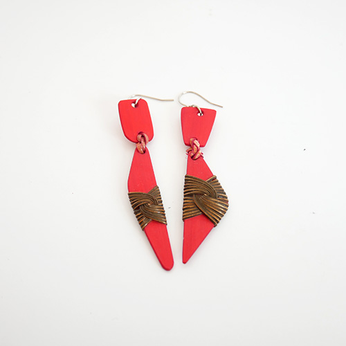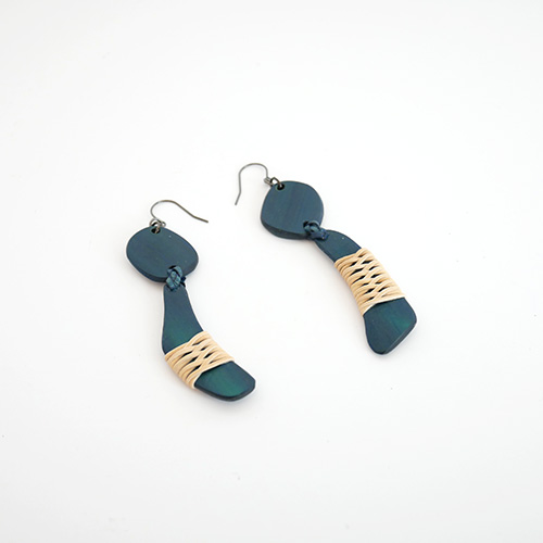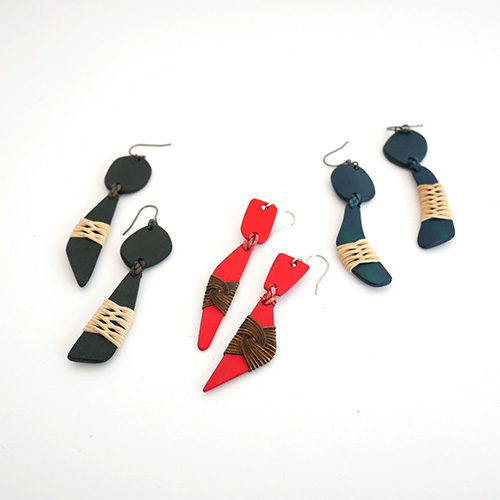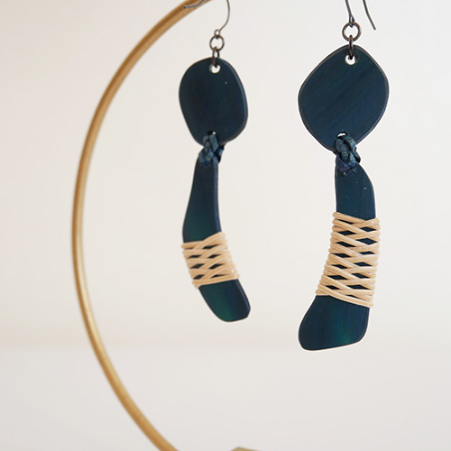 大分県産の真竹のプレートに籐飾りを施したピアスです