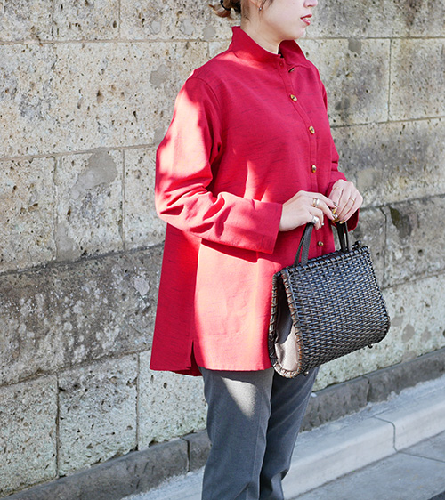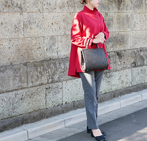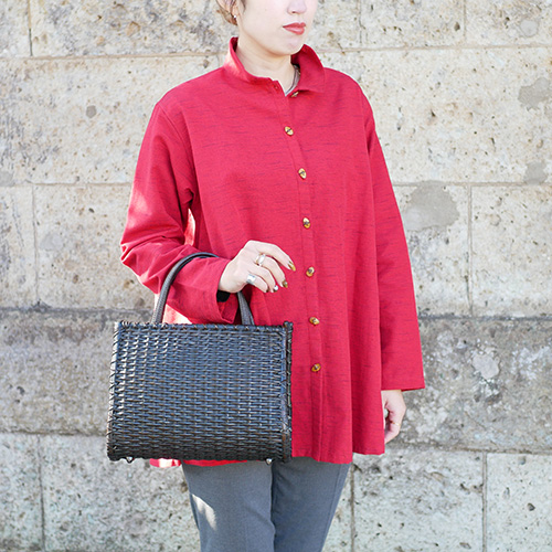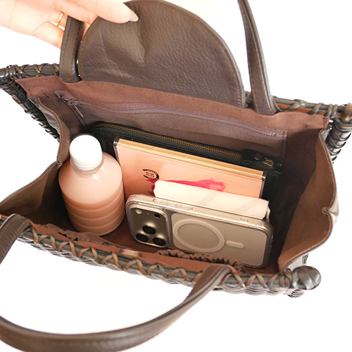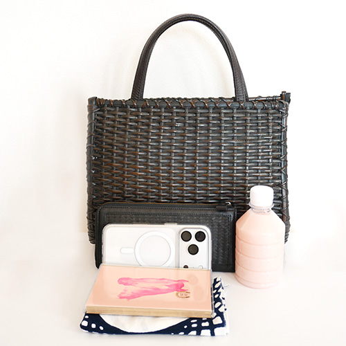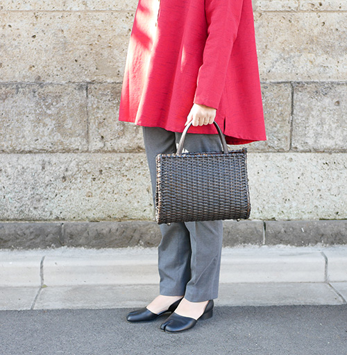 ござ目編みの端正な編み目が美しいスタイリッシュなハンドバッグ