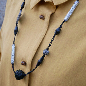 竹や籐にも増して野性味の感じられる素材であり、時には枝節の穴も活かして表情としてお楽しみいただきたいところです。皮を採取できる期間はとても短く、1年のうちでわずか2週間ほどしかありません。